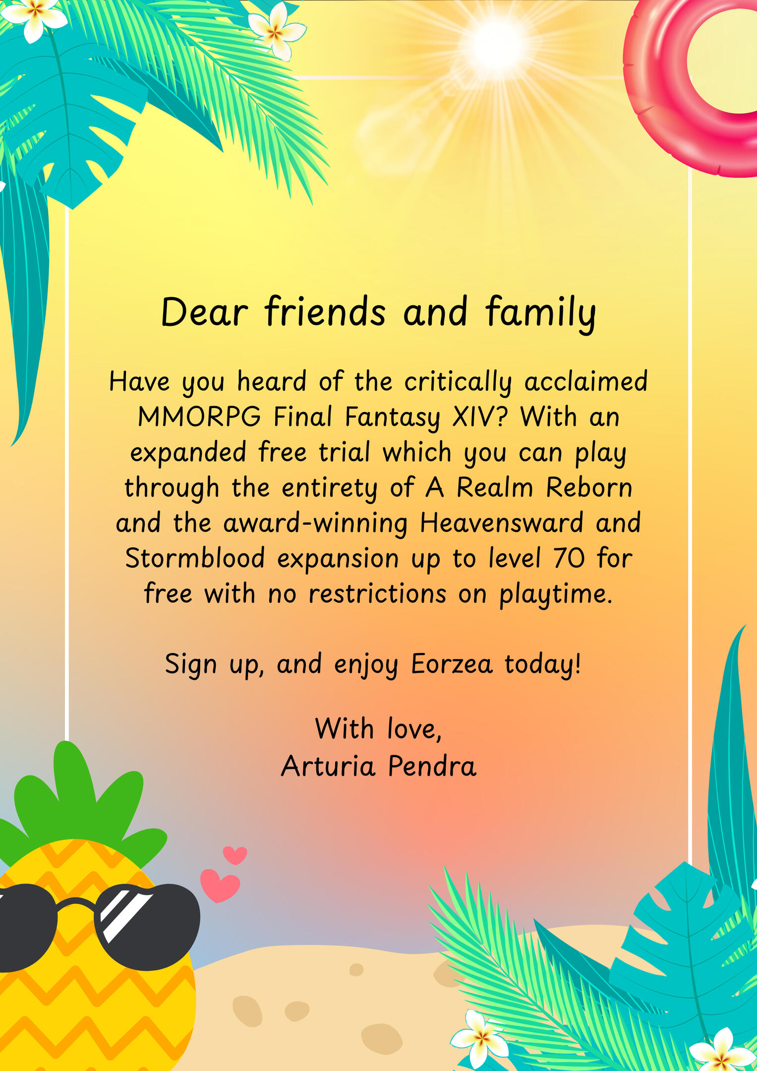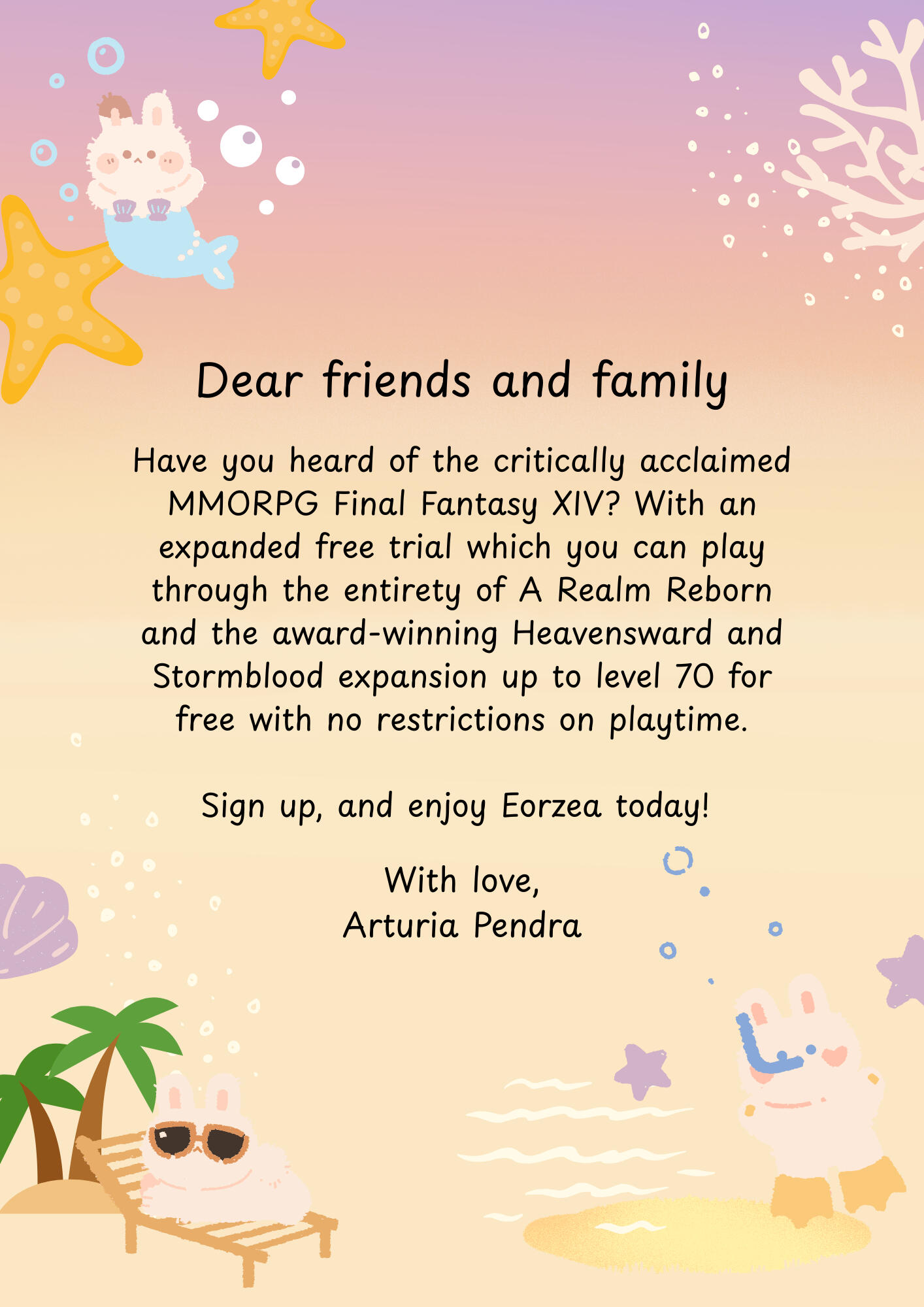 Maybe it's a big announcement, a special occasion, or just something sweet that's been sitting on your heart for a while. Whatever it is, we'd love to help you get it out into the world!Choose from two options:Let Us Do the Writing - 500,000 Gil